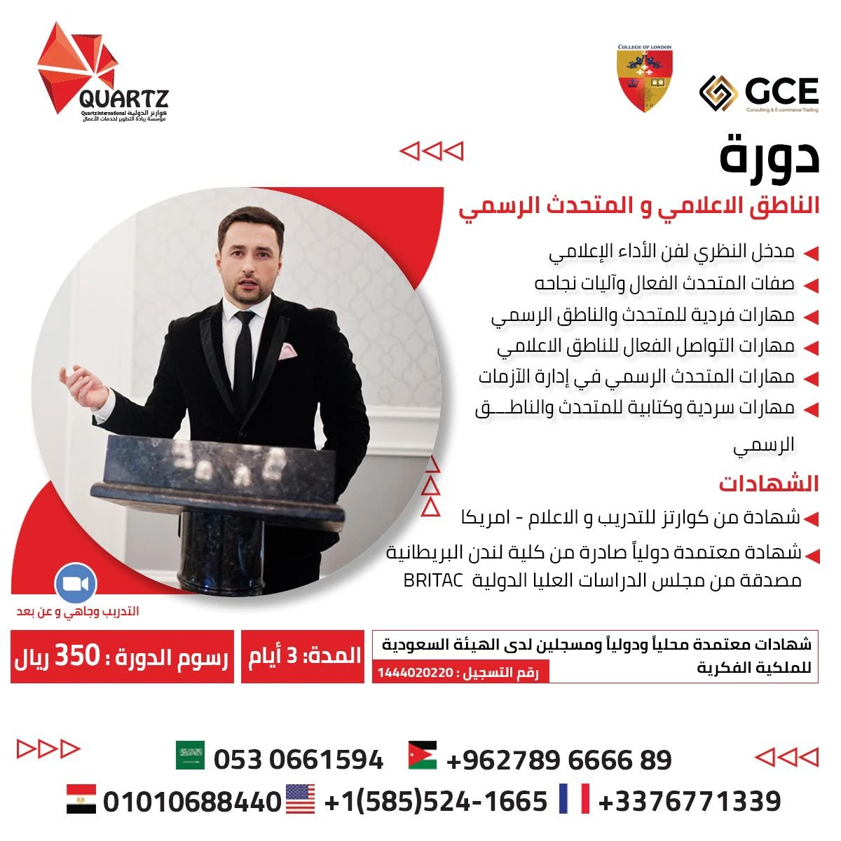 • التدرب على إلقاء البيانات الرسمية والخطابات باسم المؤسسات