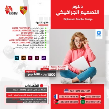 اصبح تصميم الصور و الفيديوهات والتعديل عليها من أهم الوظائف التي يمكن ان تعمل عليها و يزداد الطلب فى الوقت الحالى بشكل كبير على محترفي التصميم الجرافيكي من قبل الشركات العاملة فى كافة المجالات ، وأصبح مصمم الجرافيك أحد أهم العناصر فى الشركة بل وأحد أعلاها راتباً نظراً لأنه يساهم بشكل كبير فى رسم صورة الشركة لدى عملاء الشركة وروادها . دبلوم التصميم الجرافيكي هو عبارة عن دبلوم مقدم من أكاديمية كوارتز الدولية للتدريب و الاعلام  ، ويقدم هذه الدبلومة محاضر معتمد من شركة أدوبي وله خبرة كبيرة من مجال التصميم .