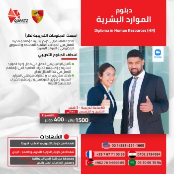 هذا البرنامج التدريبي المتخصص هو دبلوم موارد بشرية معتمد لما تمثله ادارة الموارد البشرية من اهمية كبيرة بين الادارات المختلفة في الشركات والمؤسسات، ويهدف هذا الدبلوم الى تنمية مهارات المشاركين فيه على فهم جميع الجوانب المتعلقة بعلم ادارة الموارد البشرية، وكيفية التخطيط الاستراتيجي للموارد البشرية، وكيف يمكنك عمل التحليل الوظيفي والمضي في عملية التوظيف مرورا بعملية الاختيار والتعيين، كذلك يتم تدريب المشاركين على ادارة منظومة التدريب والتطوير والتوجيه الوظيفي، وتعلم كيفية تقييم أداء الموظفين وغيرها العديد من الموضوعات التدريبية الهامة لجميع المهتمين بدراسة ادارة الموارد البشرية.