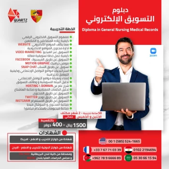 ·         شهادة من كوارتز الدولية للتدريب والاعلام معتمدة دوليا صادرة من -  أمريكا